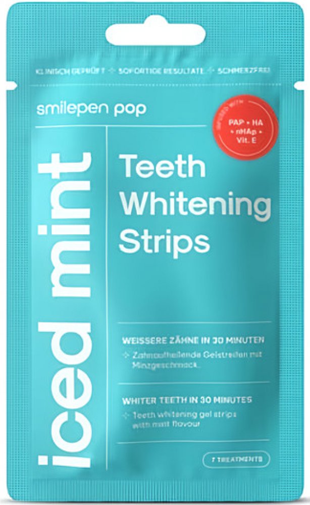 Čím jsou pásky výjimečné? Pásky Smilepen Pop dosahují viditelně zesvětlených zubů již za 30 minut díky inovativnímu bělícímu prostředku PAP. Hlavní účinná složka PAP, ftalimido-peroxi-kapronová kyselina, patří mezi nejmodernější technologie bělení zubů bez rizika poškození zubní skloviny. Je prokázáno, že bělí zuby stejně efektivně jako tradiční formule s peroxidem vodíku.