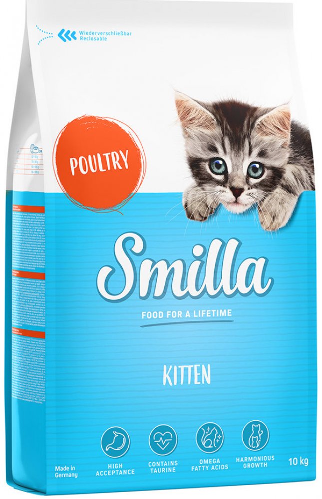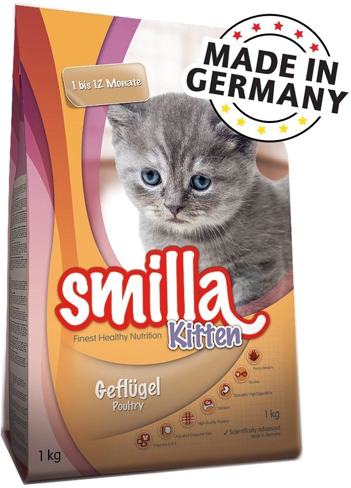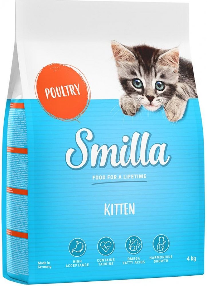 Smilla Kitten představuje vyváženou prémiovou stravu. Složení je uzpůsobeno nutričním potřebám koťat ve věku od 1 do 12 měsíců věku a je vhodné také pro březí a kojící kočky. Unikátní receptura těchto granulí byla vyvinuta specialisty na výživu zvířat na základě vědeckých výzkumů. Krmivo Smilla Kitten obsahuje veškeré vitamíny a živiny, které koťata potřebují pro zdravý start do života a správný r...