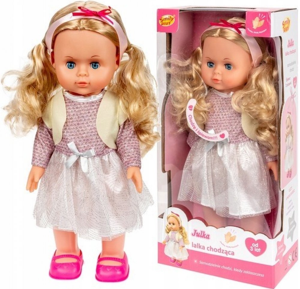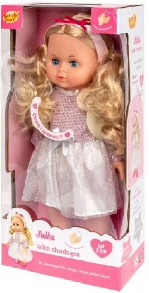 Panenka Julka mluví polsky! Stiskněte tlačítko a poslouchejte, co říká Julka. Zatleskej do dlaní a panenka začne sama chodit.