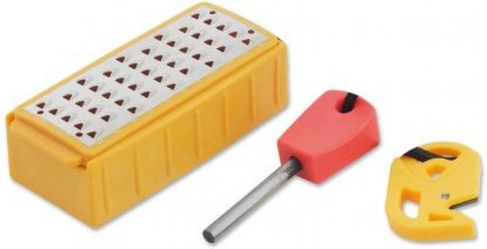 Rozdělání ohně už nemohlo být u Tinder Maker rychlejší a snadnější. Struhadlo se používá k rychlé přípravě dřevěných štěpek, které jsou uloženy ve sběrném zásobníku a chráněny proti větru, dokud nejsou použity. Pomocí přiloženého křesadla (hořčíková tyčka a škrtadlo) poté bez námahy rozděláte oheň. Se šňůrkou a okem. Rozměry struhadla: 7,8 cm x 3,6 cm x 2,4 cm.