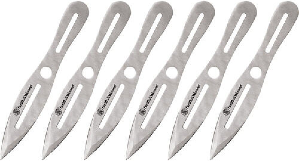 Celková délka: 203 mmMateriál: Nerezová ocel 2Cr13Hmotnost: 793 gPouzdro: Nylon Smith & Wesson® 6 balení vrhacích nožů je vyrobeno z nerezových čepelí s dvojitým ostřím.