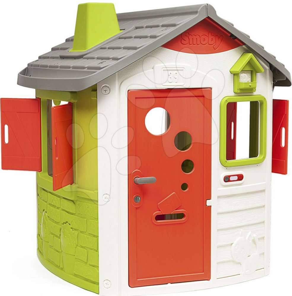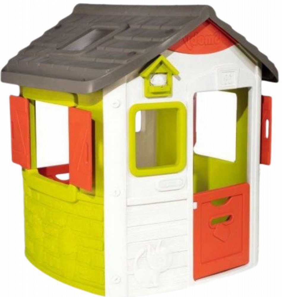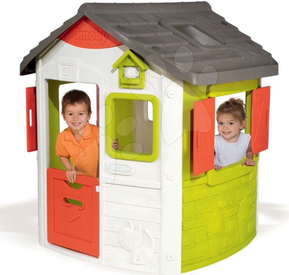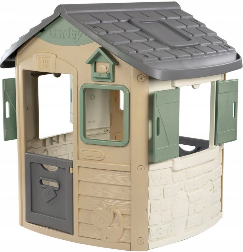 Domeček pro děti je vyroben z odolného plastového materiálu, který vydrží dlouhá léta a jeho povrch je jemný, sametový na dotek. Dětský domeček je vyhotoven v barevné kombinaci bílé, zelené, červené a šedé barvy a nádherný vzhled si zachová díky anti UV filtru, který spolehlivě ochrání barvy před slunečním zářením, takže i po dlouhé době vypadá jako nový. Domeček má pevné a stabilní dvojité plastové stěny, které odolávají i silnému větru a vlivům počasí.