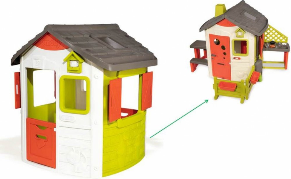 Jedinečný a inovativní koncept domečku Neo Jura Lodge přichází s možností připojení různých doplňků. Děti milují různá technická vylepšení a samy se mohou rozhodnout, co jejich domeček potřebuje. K tomuto domku lze samostatně připojit letní kuchyňku, piknikový stolek i předzahrádku s květináči, takže si malí kuchaři a zahrádkáři přijdou na své. Vynikajícím doplňkem může být i komín, zvonek nebo okap s barelem na zachycování dešťové vody, spolu s konví na zalévání. Děti, které mají rády soukromí, určitě potěší celé dveře s klíčkem, spolu s otvorem na dopisy od pošťáka.
