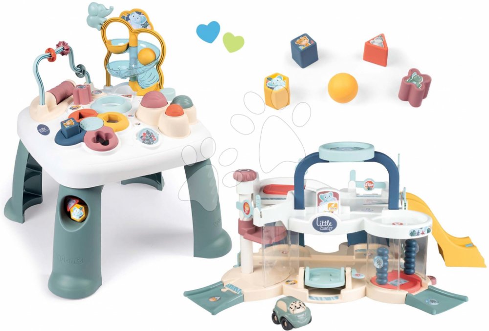 Smoby Activity Table Little a garáž s automyčkou Smoby a heliportem s autíčkem