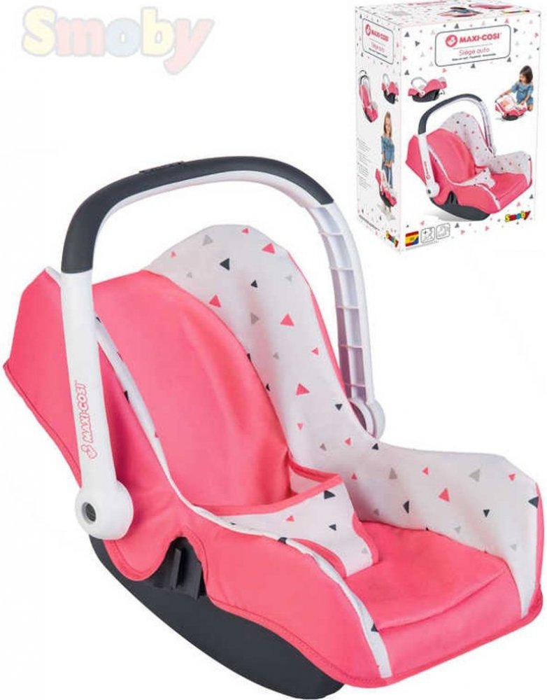 Smoby 240228 Autosedačka Maxi Cosi Quinny pro panenku, výrobce Smoby. Praktická trojkombinace autosedačky, jídelní židle a houpačky pro panenku. Hračka je určena pro panenku cca 42 cm Sedačka má kvalitní plastové sedadlo pokryté textilií. Polohovatelná a ergonomicky tvarovaná rukojeť se plně přizpůsobí potřebám vašeho dítěte. Sedadlo má ve své zadní části prostor na ukládání drobností. Autosedačka má bezpečnostní pás pro panenku, který ji chrání před vypadnutím. Rozměry autosedačky: 32 x 35 x 47 cm Pro děti od 3 let