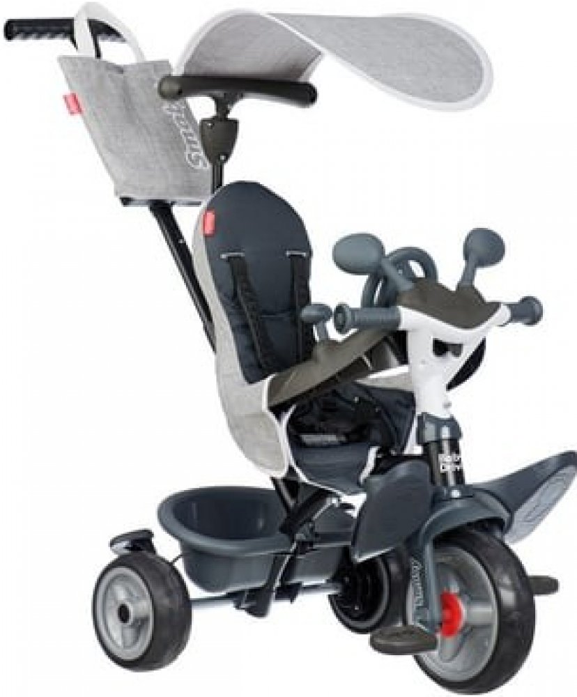 Smoby Dětská tříkolka Baby Driver 3v1 Vlastnosti Odnímatelná rodičovská tlačná tyč s funkcí řízení Odnímatelný bezpečnostní oblouk s herní funkcí jako zpětná zrcátka; klakson a volant Skořepinové sedadlo s pratelným potahem, bezpečnostním pásem a odnímatelnou opěrkou hlavy Odnímatelné opěrky nohou Volnoběh řídítek Přepínatelný volnoběh pedálů Omezení řízení Odnímatelná taška Bezúdržbová; protisklu...