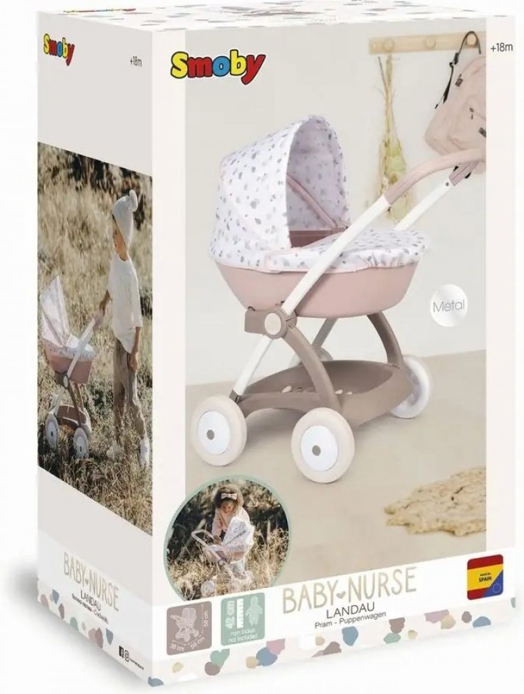 Smoby Baby Nurse Hluboký kočárek Dětský oválný hluboký kočárek pro panenky. Kočárek je stabilní a pevný. Kočárek má jemné oblé tvary. Výška rukojeti kočárku pro děti je 56 cm. Vhodný pro panenku s délkou 42 cm. Pod kočárkem je praktický malý úložný prostor. Součástí je přikrývka pro vrchní část kočárku. Panenka není součástí balení. Věk: 18m+ Materiál: plast, textil Výška rukojeti: 56 cm Rozměry k...
