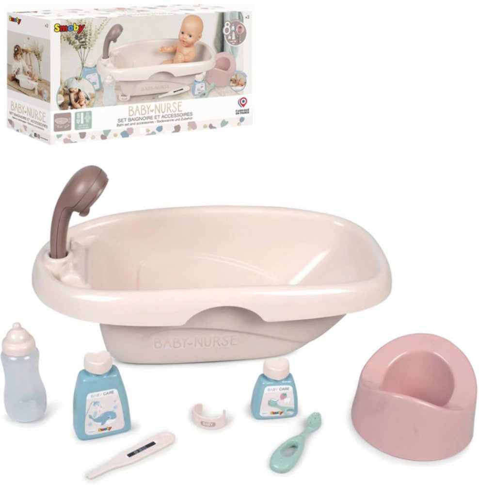 Smoby Baby Nurse toaletní kojenecký set pro panenku miminko. Součástí vana, sprcha, nočník a další doplňky.