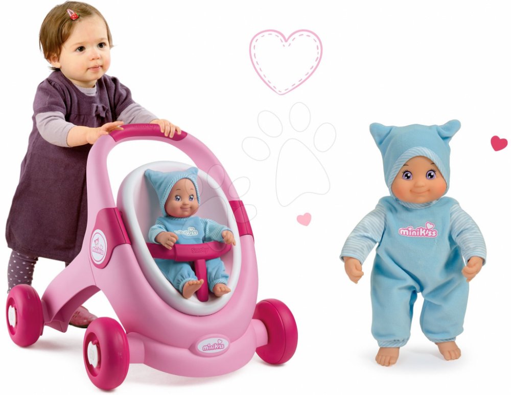 Chodítko a kočárek s autosedačkou MiniKiss 3v1 Smoby s brzdou a bezpečnostním pásem od 12 měsíců