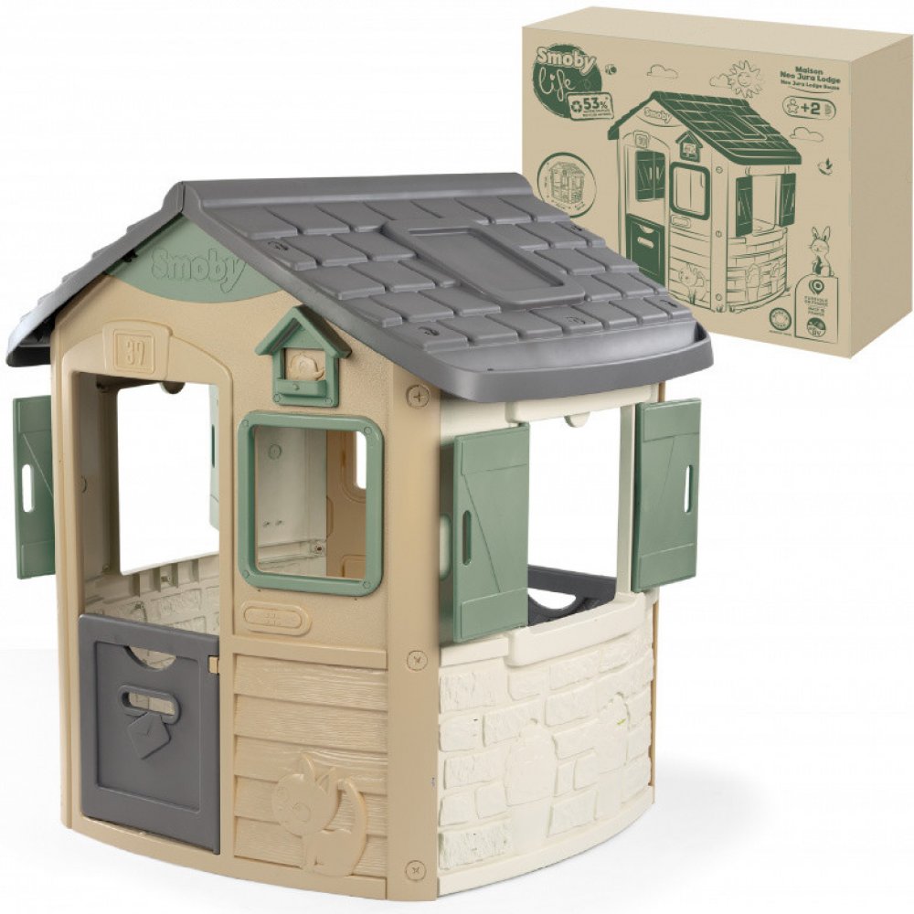 Smoby Domček ekologický Neo Jura Lodge Playhouse Green rozšíriteľný 2 dvere 2 okná s okenicami z recyklovaného materiálu s UV filtrom od 24 mes SM810503