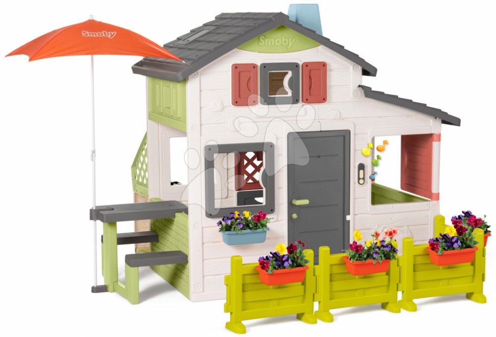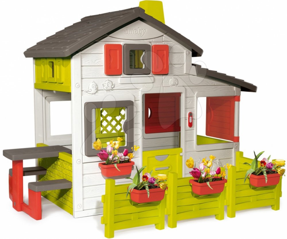 Smoby je renomovaný francouzský výrobce plastových hraček pro děti. Plast na hračkách Smoby je pevný, odolný, ale zároveň jemný a hladký k dětským ručkám, sametový na dotek. Všechny dětské hračky Smoby mají oblé hrany, aby vaše děti byly během veselých her chráněny před zraněními. Barvy na plastových hračkách Smoby podněcují a rozvíjejí dětskou představivost a fantazii. Zahradní domeček pro děti je inspirován nejnovějšími trendy v architektuře.