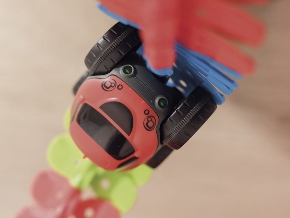 Dvě exkluzivní pavučinové přísavky poskytují dokonalý vzhled Spidey a umožňují kreativní vedení závodní dráhy. Podpěry zajišťují ještě větší kontrolu v zatáčkách a zabraňují vytažení závodního vozu z háku v důsledku strmých zatáček. Fixační systém je snadno pochopitelný i pro malé děti a umožňuje připevnění na různé hladké povrchy. Sada se skládá z celkem 72 kolejnicových dílů ve čtyřech barvách a lze je kombinovat tak, aby vznikla dráha o délce 1,72 m.