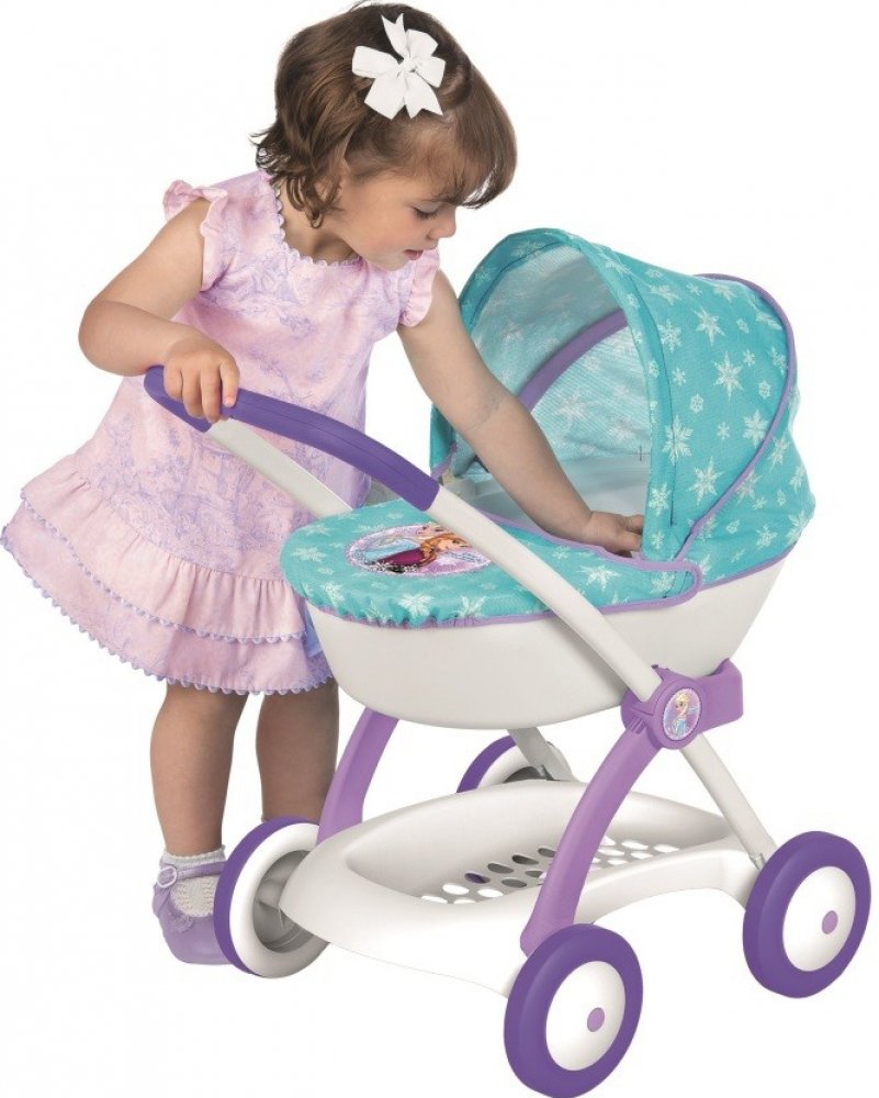 Kočárek pro panenky Frozen z dílny renomovaného výrobce Smoby je moderní hluboký kočárek na vození panenky.