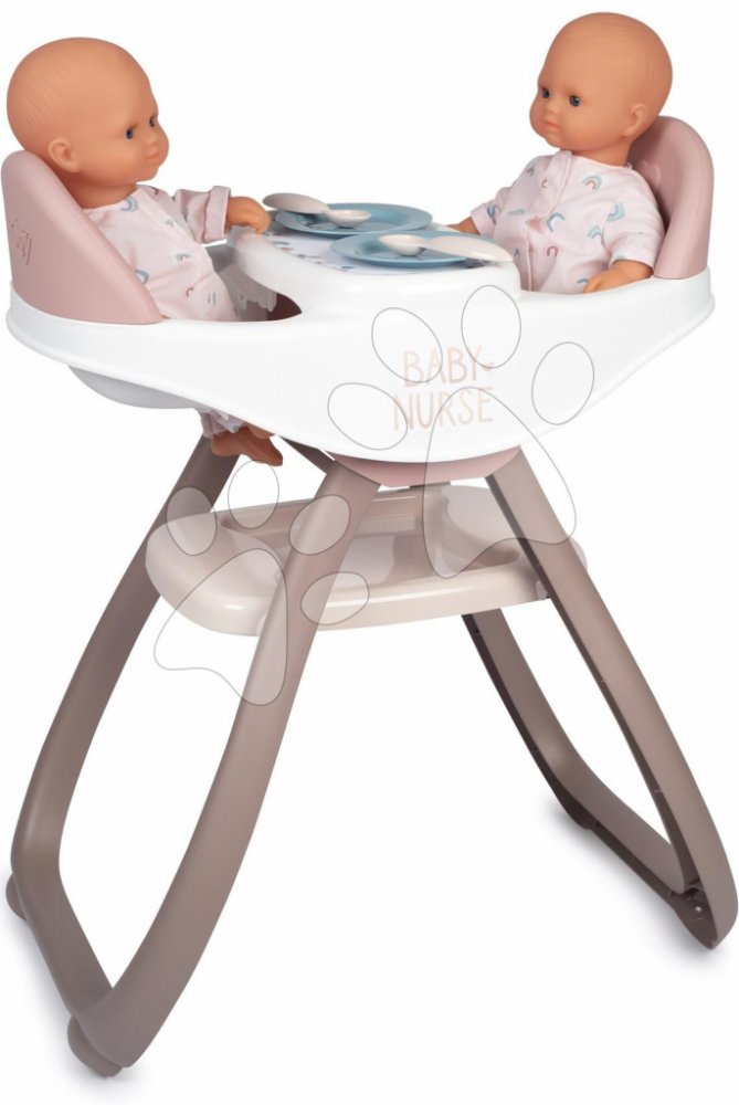 Jídelní židle pro dvojčata panenky z edice Baby Nurse představuje vynikající hračku, se kterou se zabaví dívky od 2 let. Pohodlně do ní mohou usadit až dvě panenky o velikosti 42 cm. Židle pro panenky je vyhotovena v jemných pastelových barvách růžové a bílé, díky svému francouzskému vzhledu okouzlí děti na první pohled. Vysoké zádové opěrky na židli zajistí, že panenky nespadnou a na jídelním pultíku je malé maminky jednoduše nakrmí. Ve spodní části se nachází prostorný úložný prostor, kam lze uložit různé doplňky.