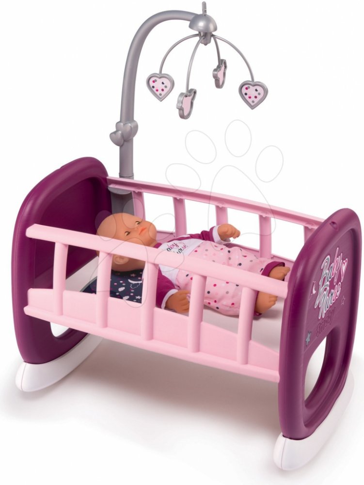 Kolébka s kolotočem Violette z edice Baby Nurse od francouzského výrobce Smoby je kvalitní kolébka a zároveň postýlka, vhodná pro panenku s maximální velikostí 42 cm. Je vyhotovena z pevných a odolných plastových materiálů, které jsou sametové na dotek. Krásné růžové odstíny a originální francouzský design zaujme malé maminky na první pohled. Její součástí je i kolotoč, umístěný nad hlavičkou panenky, který pomůže s jejím uspáváním. Jsou na něm znázorněna srdíčka a ptáčci. Na čele postýlky je velký nápis Baby Nurse a motiv s obrázky srdíčka, hvězdiček a měsíčku. Holčičky v této nádherné postýlce mohou panenku houpat, uspávat a zažijí s ní hodně radostných chvil.Postýlka má jemné oblé tvary, které se rozhoupe při jemném dotyku, a tak dítě uspává svou oblíbenou panenku. Její rozměry jsou 47*30*60 cm a hmotnost je pouze 1,9 kg, takže se dá jednoduše přenášet. Celková výška postýlky je 47 cm. Panenka není součástí balení. K čištění hračky používejte pouze jemně vlhký hadřík. Děti rády předstírají, že jejich panenka je opravdová a při hře si rozvíjejí kognitivní, motorické schopnosti a pocit zodpovědnosti. Na vlastní panence se učí, jak ji oblékat a svlékat, což pak praktikují i samy na sobě.Francouzský Smoby má dlouholetou tradici ve výrobě dětských hraček. Je lídrem na trhu, a hračky jsou vyrobeny ze zdravotně nezávadného a kvalitního plastového materiálu, který prošel evropskými testy kvality. Hračky Smoby podněcují a rozvíjejí dětskou představivost a fantazii, upoutají každé nejmenší děťátko, proto je to nejlepší dárek pro vaše nejmenší.SMOBY Kolébka s kolotočem Violette Baby Nurse 3032162203439