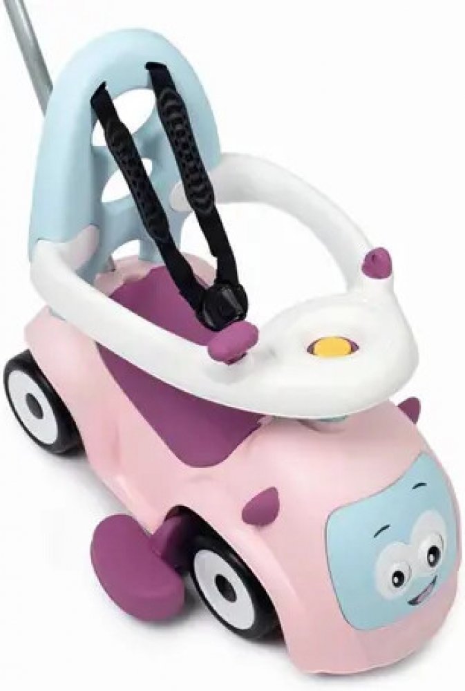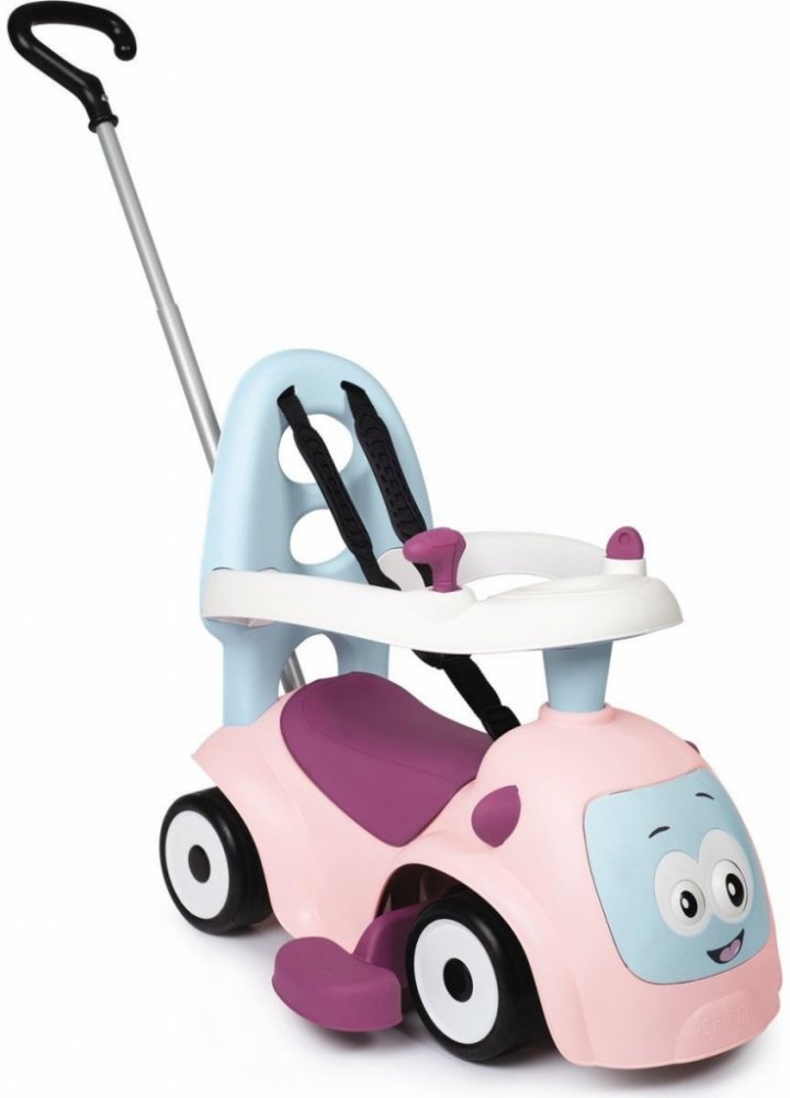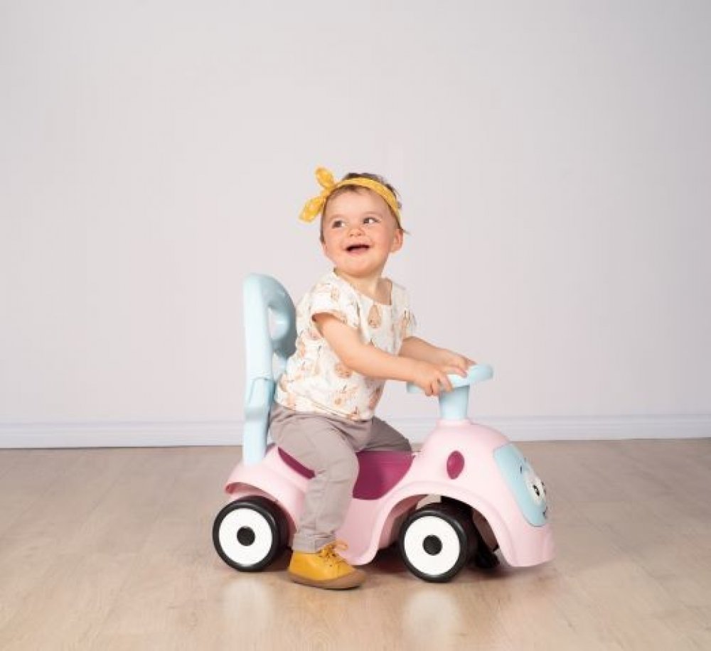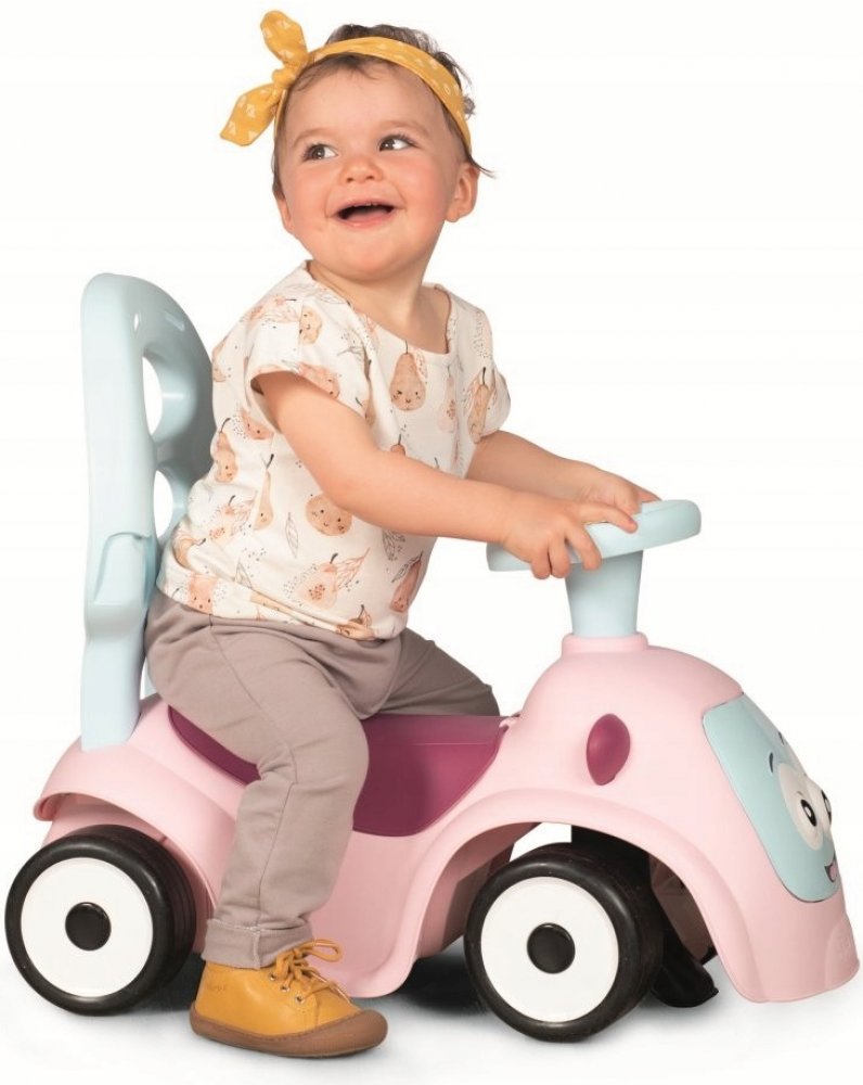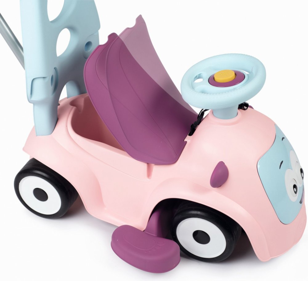 Francouzští designéři Smoby navrhli toto odrážedlo speciálně pro potřeby nejmenších dětí. Je vyrobeno z nejkvalitnějších plastových materiálů, má oblé tvary, jeho povrch je sametový na dotek. Rozměry odrážedla jsou 61*44*55 cm. Elektronický volant funguje na 3 baterie typu LR44/AG13, které jsou součástí balení. Multifunkční odrážedlo hravým způsobem rozvíjí dětskou fantazii, představivost, spolu s ním se děti učí dělat první kroky a poznávat okolní svět. Také si zlepšují jemnou motoriku, koordinaci a pohybové schopnosti.