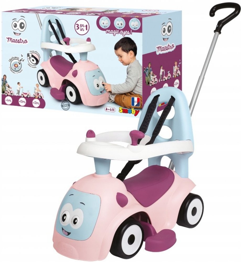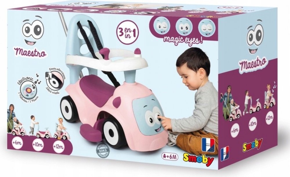 Rozšiřitelné odrážedlo Maestro Ride-On Pink 3v1 od francouzského výrobce Smoby je tím nejlepším dárkem pro všechny děti a zejména holčičky od 6 měsíců. Díky odpojitelným částem se dokáže přizpůsobovat potřebám dětí a růst s nimi od 6 do 36 měsíců. Je vyhotoveno v krásné růžovo-fialovo-bílé barevné kombinaci, přední masku zdobí veselý úsměv a pohyblivé magické oči, kterým dokážou dívky kdykoliv změ...