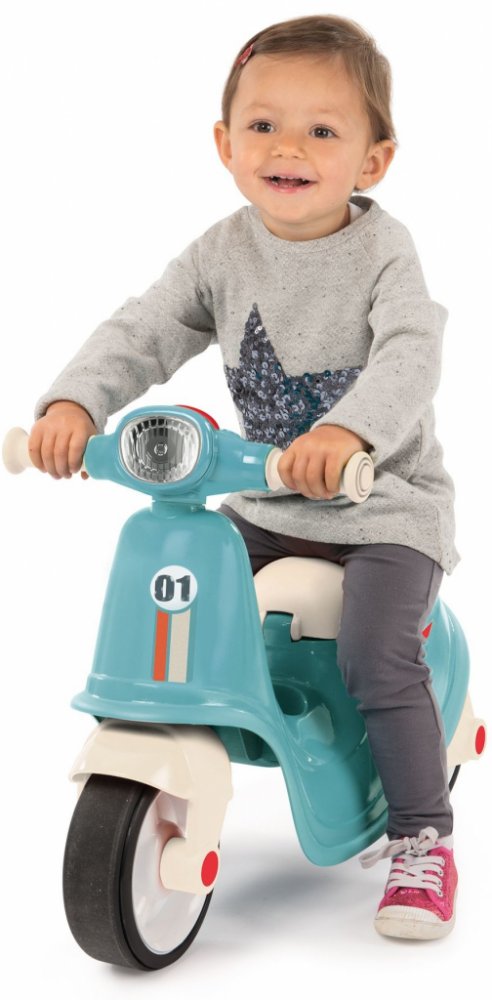 Dětské odrážedlo v provedení modrého skútru je skvělou pomůckou při motorickém a pohybovém vývoji dítěte.
