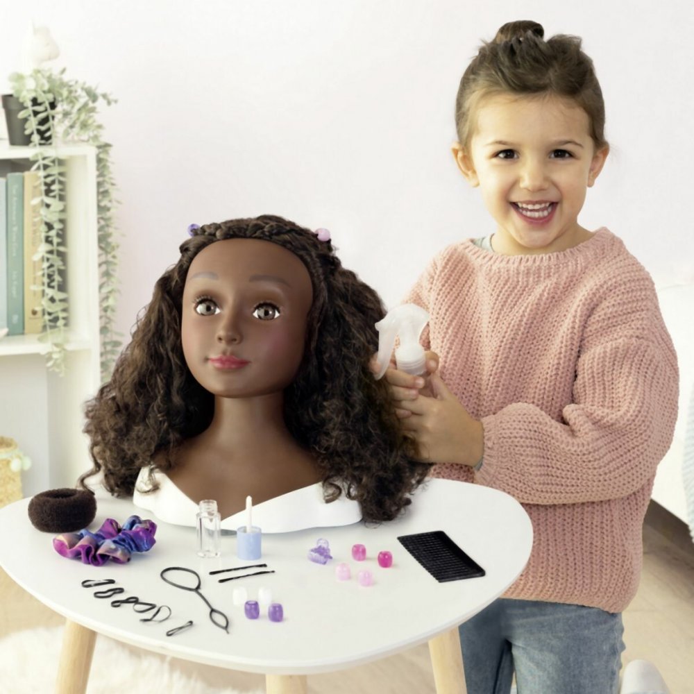 Česací hlava pro vytváření trendy účesů s magickou funkcí. Použij přiložený štěteček na rty namočený do studené vody a rty se krásně vybarví. Sada obsahuje 23 ks doplňků, které můžete uschovat v tajné skrýši v podstavci hlavy. Hračka je vybavena přísavkami na spodní části podstavce pro lepší stabilitu.Výška hlavy 26 cm.