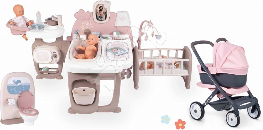 Domeček pro panenku Large Doll's Play Center Natur D'Amour Baby Nurse Smoby trojkřídlý s 23 doplňky