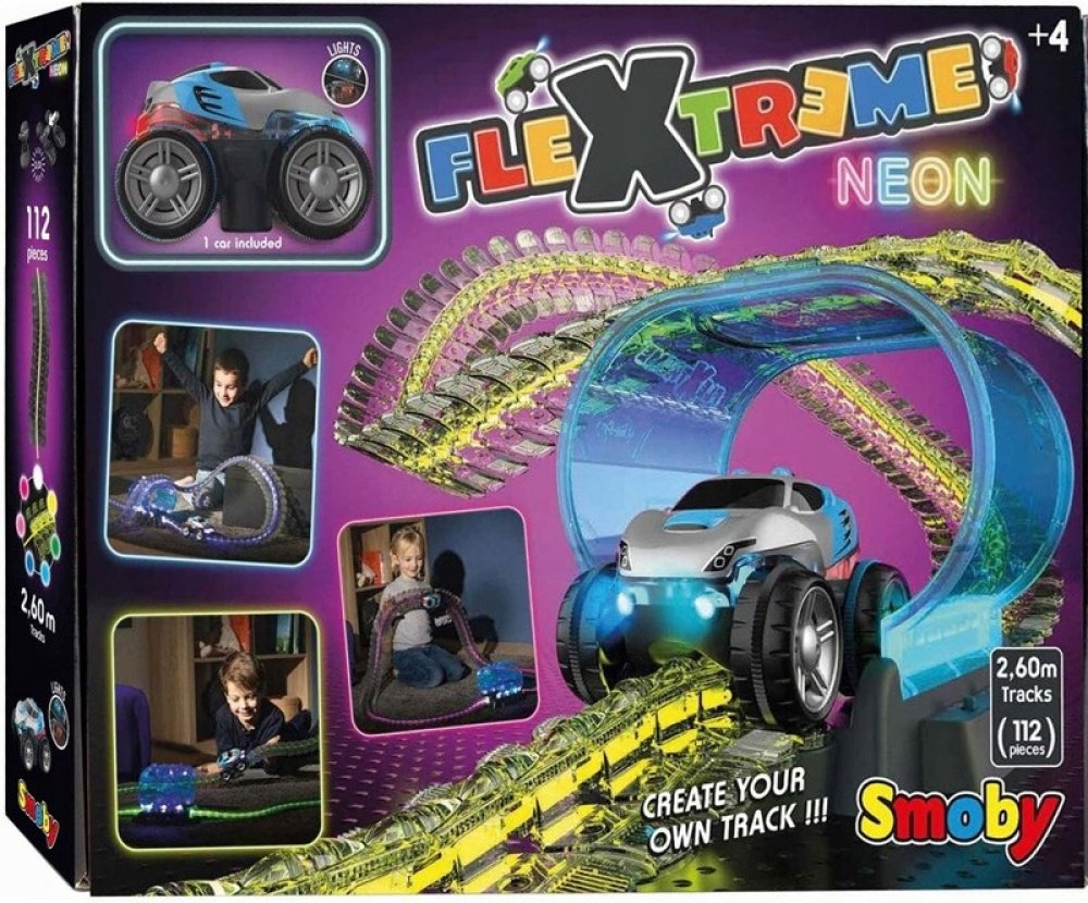 Smoby Neonová autodráha SMOBY Flextreme se startovací sadou do auta