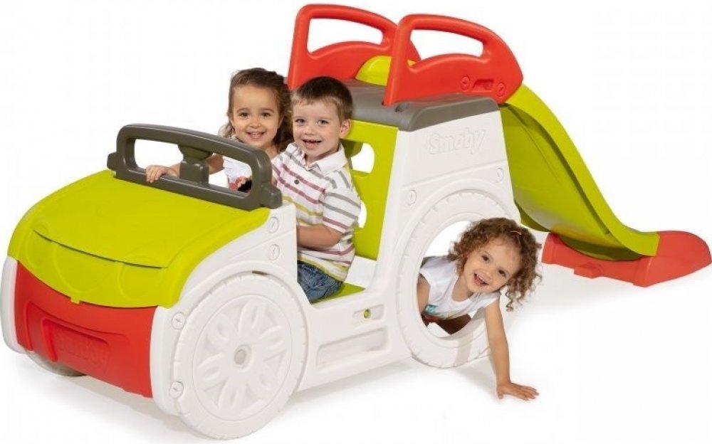 Proměňte zahradu v dobrodružnou zónu. SMOBY Adventure Car 3v1 nabízí dětem svět fantazie i pohybu v jednom – řízení „teréňáku“, jízdu po dlouhé skluzavce a objevování pískoviště ukrytého pod kapotou. Odolná konstrukce s ANTI-UV ochranou zachovává barvy a pevnost po dlouhá léta.Ergonomické schůdky s protiskluzem zajišťují bezpečný výstup, mechanický klakson a palubní deska startují dětskou fantazii a spodní tunel vytváří zábavnou kryjící skrýš. Ideální pro samostatnou i společnou hru na čerstvém vzduchu.3v1 zábava: auto na hraní, skluzavka 150 cm, pískoviště pod kapotouBezpečný pohyb: stabilní konstrukce, protiskluzové schůdky, madlaPodpora rozvoje: motorika, koordinace, role-play a kreativitaDo exteriéru: odolný plast s ANTI-UV, snadná údržbaSpecifikaceVěkod 18 měsícůFunkce3v1: auto na hraní, skluzavka, pískovištěDélka skluzu150 cmVýstupergonomické schůdky s protiskluzemPrvky řízeníkierownica s mechanickým klaksonem, palubní deska se stajkouDalší zóna hrytunel a skrýš v dolní částiMateriálodolný plastPovrchová úpravaANTI-UV ochrana proti blednutíVhodné použitíexteriér – zahradaZnačkaSMOBY