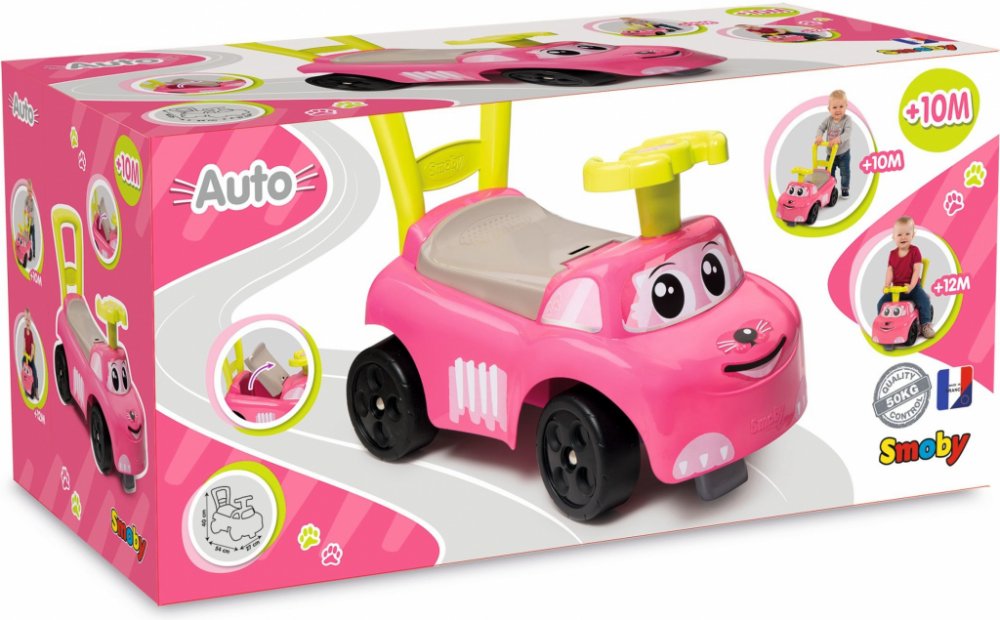 Dětské odrážedlo a chodítko Smoby Auto Ride-on je moderní růžové odrážedlo vhodné zejména pro holčičky od 10 měsíců. Odrážedlo je vyhotoveno v růžové barvě, která nadchne každé děvčátko. Vaše dcera ho nejprve využije jako chodítko, se kterým se naučí dělat první krůčky, a když po čase nabude větší jistotu a stabilitu, může si sednout na odrážedlo a plnohodnotně se odrážet.