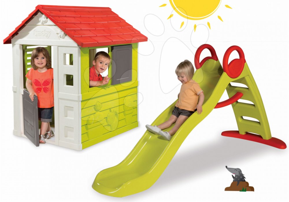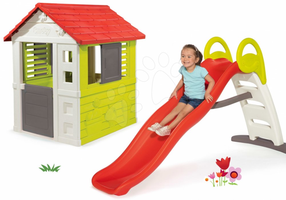Set dětského domečku Smoby Nature a krásné zářivě zelené-červené skluzavky Funny s napojením na vodu je kombinace hraček, které potěší vaše ratolesti a hned dvojnásobně. Hračky spolu ladí i barevně a tak ozdobí vaši zahradu a vaše děti od nich neodtrhnete. Koupí setu hraček potěšíte nejen své dětičky, ale i svou peněženku. Set hraček má výhodnější cenu než koupě separátních hraček. Set domku a skl...
