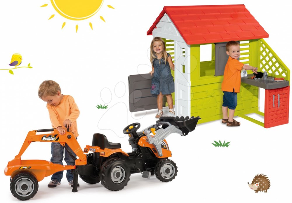 Traktor a domeček se k sobě dokonale hodí, vytvářejí spolu jeden zábavný celek pro všechny děti od 2 let. Francouzský výrobce Smoby je zárukou bezpečnosti, originality a spokojenosti dětí i rodičů.