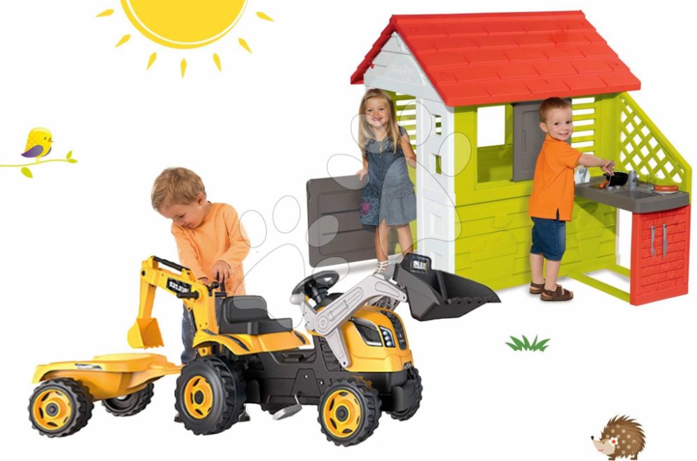 Set hraček Smoby je cenově výhodná sada hraček: domeček Pretty Nature s kuchyňkou a doplňky a traktor Builder Max Stavbař. Dětské zahradní hračky tvoří dokonalý celek, se kterým vašim dětem vytvoříte zábavné zahradní centrum.