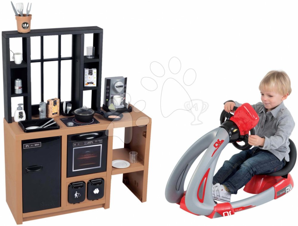 Smoby Set kuchyňka moderní Loft Industrial a trenažér V8 Driver se zvukem a světlem