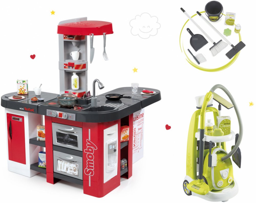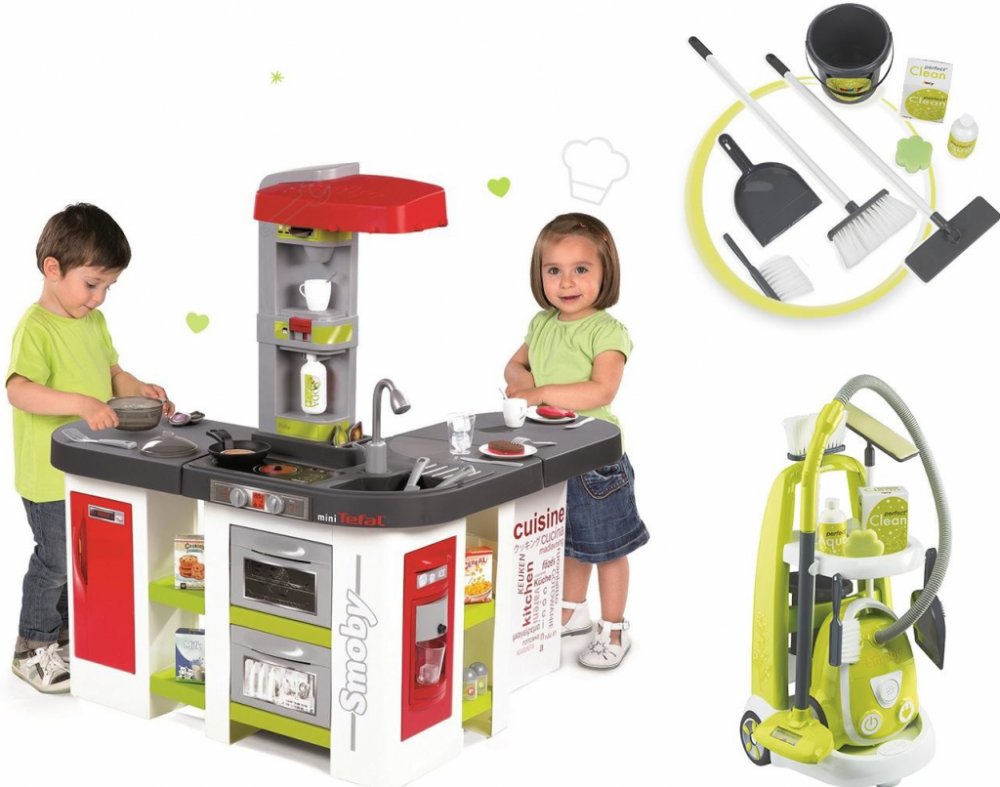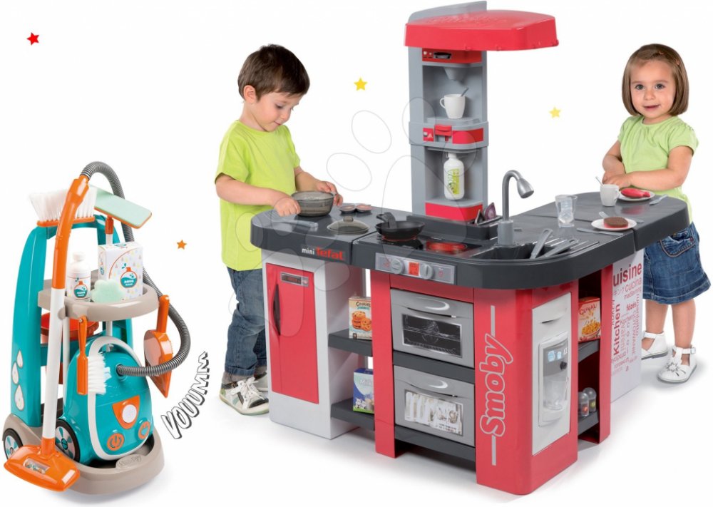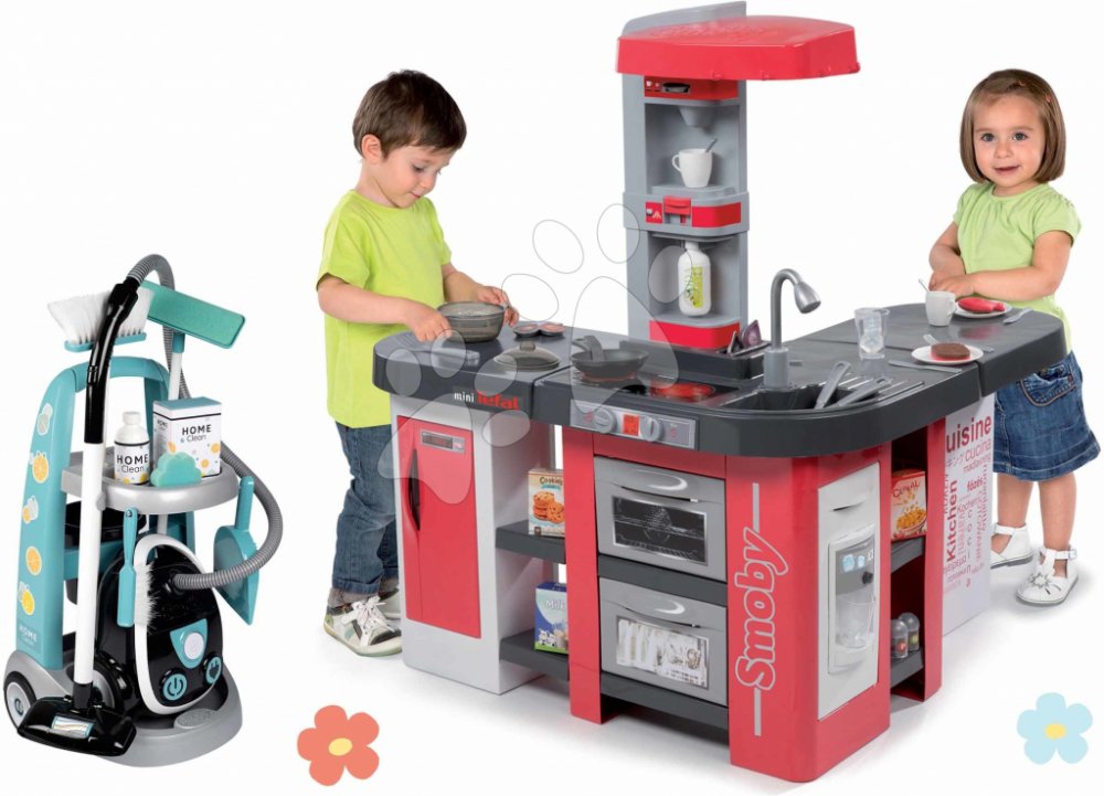 Francouzský výrobce Smoby produkuje jedinečné plastové hračky pro děti různých věkových kategorií ve vysoké kvalitě. Plast na hračkách Smoby je pevný a zároveň jemný k dětským ručkám, sametový na dotek. Všechny dětské hračky mají oblé hrany a barvy podněcující dětskou fantazii. Sada kuchyňky a úklidového vozíku s vysavačem je ten pravý dárek pro děti, které si rády hrají na kuchaře nebo rády pomáhají s úklidem v domácnosti.