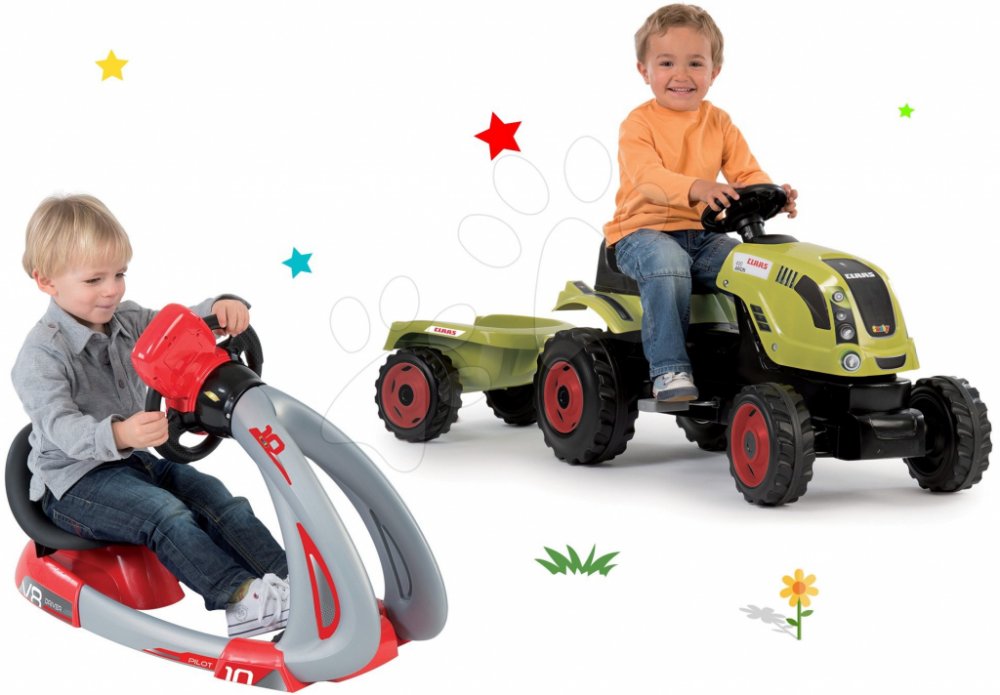 Smoby set traktor Claas Farmer XL s přívěsem a trenažér V8 Driver elektronický