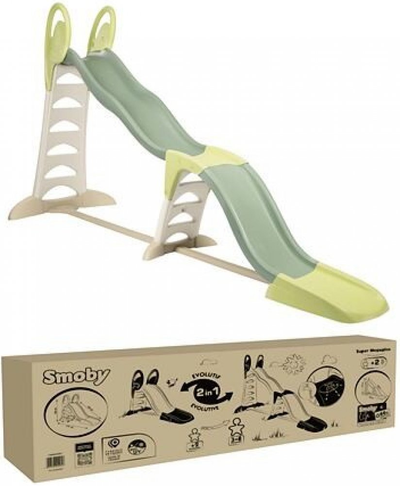 Mega tobogán s trojitým vlněním nabízí dvě varianty skluzu – pro nejmenší děti s délkou 1,7 m a pro starší děti prodlouženou verzi s třemi vlnami o délce 3,6 m. Díky široké základně, vyfukovanému žebříku s ergonomickými držadly a protiskluzovým schůdkům je zajištěna maximální bezpečnost. Plastové díly s anti-UV ochranou odolávají povětrnostním vlivům a udržují si stálost barev. Vyrobeno z minimálně 66 % recyklovaného materiálu.