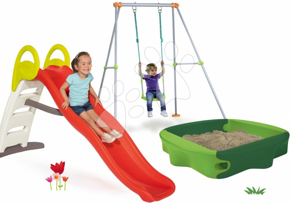 Smoby Smoby set dětská skluzavka Toboggan Funny a houpačka s kovovou konstrukcí