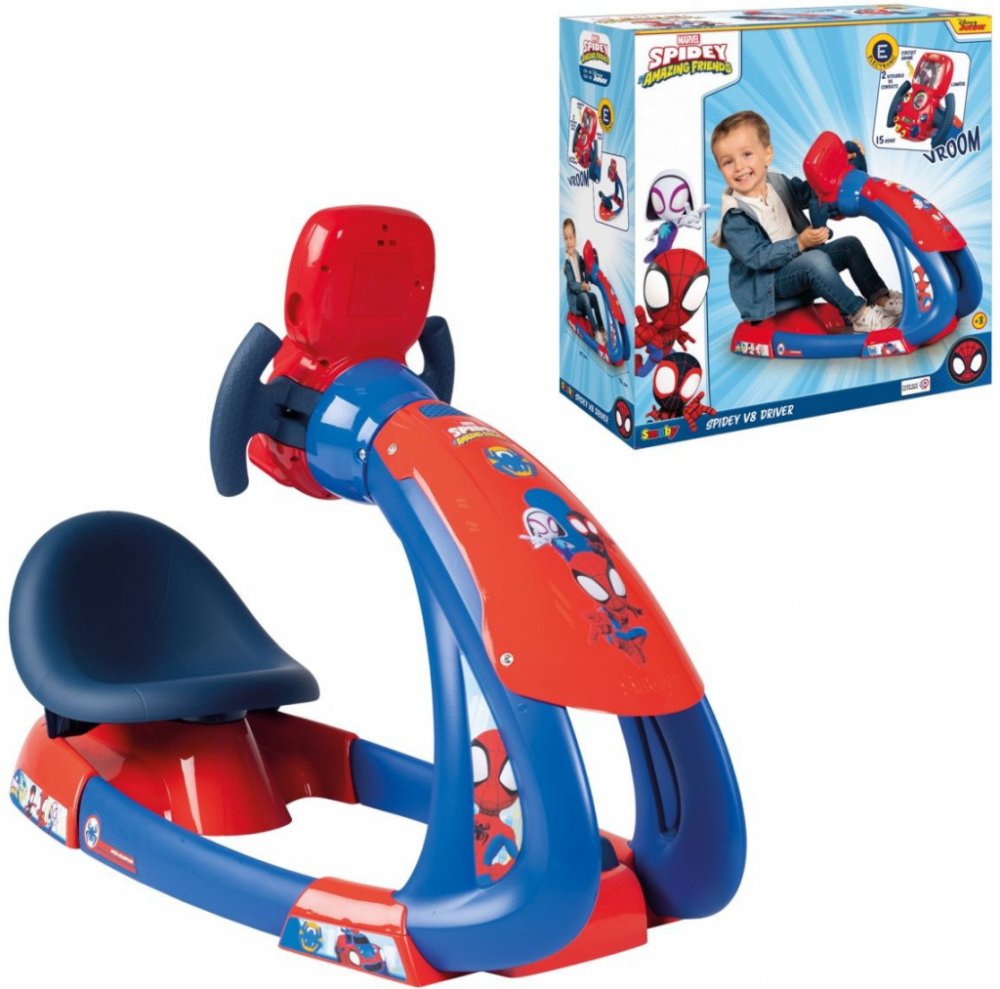 Smoby Spidey Driving Simulator Soustředěná arkádová zábava - Simulátor řidiče Spidey V8 od společnosti Smoby vám umožní řídit jako váš oblíbený hrdina a vezme vás na napínavá dobrodružství při automobilových honičkách. Ergonomický design pro pohodlnou hru - díky tvarovanému sedadlu a 3 polohám nastavení za volantem stráví malý závodník hodiny hraní v pohodlí. Elektronický volant s animovaným okruhem a osvětlenou obrazovkou - přímo se ponoříš do světa automobilových honiček, stejně jako v kresleném Spideym a jeho neobyčejných kamarádech. Multifunkční simulátor podněcuje představivost a rozvíjí obratnost malého závodníka - pro větší realističnost jízdy bylo integrováno 15 zvuků auta a závodních zvuků, možnost posilovače, zpátečka, 2 pedály. Hračky s tradicí: značka Smoby již od roku 1924 poskytuje odolné hračky díky neustálé kontrole kvality a nejmodernějším výrobním zařízením. Objevte dobrodružství s rallye simulátorem jízdy od renomované francouzské společnosti Smoby v licenci Disney Spidey. Vydejte se na jízdu plnou vzrušení a překvapivých zážitků s postavičkami z animovaného filmu Spidey a přátelé. Smoby je rodiči ceněná francouzská značka hraček, pro kterou je podpora zdravého vývoje dětí prioritou. Pověst značky Smoby byla vybudována na základě dodržování přísných výrobních norem pro bezpečnost hraček. Dlouholeté zkušenosti a používání vysoce kvalitních materiálů, stejně jako vysoká úroveň ekologického povědomí, potvrzují její odbornost. Rozmanitost sortimentu Smoby tvoří odolné a bezpečné dětské domečky, hračky na zahradu, atrakce, hrací koutky nebo vzdělávací hračky Little Smoby pro miminka..