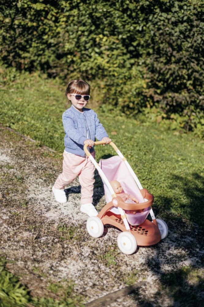 Má stabilní a pevná kolečka, která zajišťují hladkou a snadnou jízdu. Je vyroben z kvalitního a odolného plastu, který je sametový na dotek. Holčičky si ho mohou vzít na procházky do parku, používat ho v interiéru i exteriéru. Hraní se s panenkami je krásná hra, kterou mají v oblibě všechny malé holčičky. Kromě zábavy však poskytuje i mnoho možností na růst a rozvoj dítěte, přičemž se přirozeným a hravým způsobem přibližuje světu dospělých. Rozměry produktu jsou 60*38*55 cm. Panenka není součástí balení.