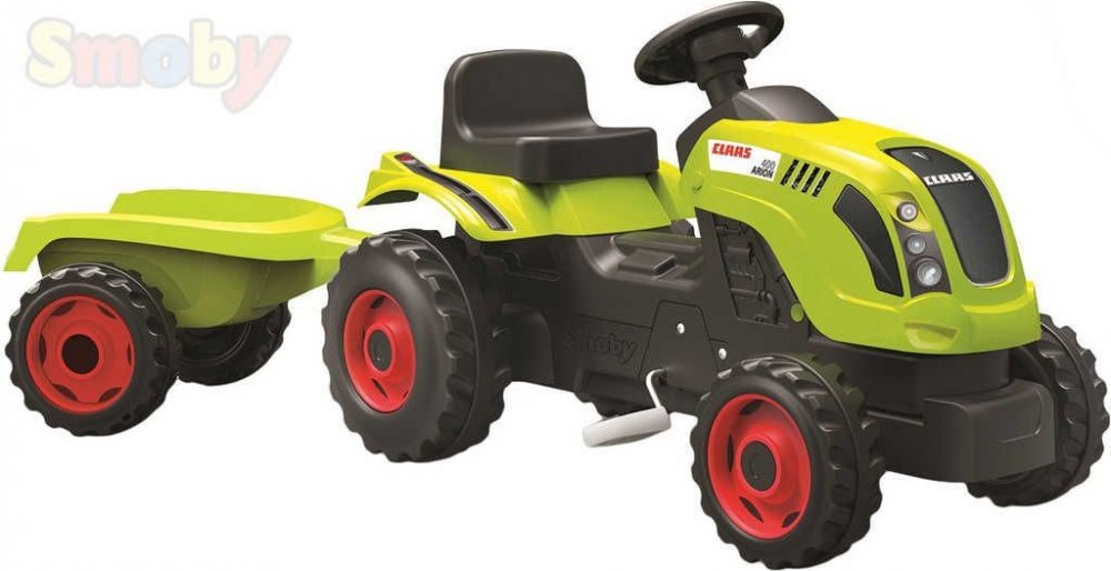 Traktor Farmer XL CLAAS ARION 400 s přvěsem je vhodný pro děti od 3 let. řetězový pohon je bezpečně schovaný, takže je chráněn před prachem a nečistotami, které by se na něj mohli nalepit. Světoznámá traktorová značka Claas vyrábí zemědělské stroje, které roky plní své účely. Kvalita a design jsou jedinečné. Sada Farmer XL CLAAS ARION 400 od Smoby Toys nabídne vše malým farmářům splnit si své sny. Robustní šlapací traktor je vodhný pro děti od 3 let, je vyroben dle originálu a má vynikající jezdící vlastnosti s mnoha možnostmi hraní. řetězový pohon je bezpečně schovaný, takže je chráněn před prachem a nečistotami, které by se na něj mohli nalepit. Děti ho ovládají jednoduše šlapáním pedálů a pomocí volantu. Zvládne jízdu i na nerovném povrchu. Pokud se řetěz povolí, je ho možné dotáhnout. Má realistický design a je vyroben z těch nejkvalitnějších materiálů. Čtyři široká umělohmotná kola a pedály jsou připravena na tvou jízdu. Sedačku traktoru lze nastavovat - jednoduchým způsobem ji přisunete blíže nebo dále od volantu a pedálů, čímž se sedačka přizpůsobí velikosti a potřebám dítěte K traktoru je pomocí jistícího čepu připojena velká vlečka, čímž poskytuje dostatek využitelného prostoru pro přepravu písku či nákupu z obchodu. Nosnost přívěsu je až 25 kg. Má pevnou plastovou konstrukci. Kola traktoru jsou ovládány pomocí volantu, přesně jako na opravdovém traktoru. Nechybí ani mechanický klakson. Skvělý traktor Farmer Farmer XL CLAAS ARION 400 je vyroben z kvalitních materiálů. Vyrobeno ve Francii. Francouzský výrobce hraček Smoby Toys ví, co udělá děti a rodiče šťastnými. Jsou to inovativní hračky, které pomohou dětem poznávat a trénovat jejich vlastní schopnosti. Jsou pestré a plné nápadů. Podrobnosti: Číslo výrobku výrobce: 7600710114 Rozměr produktu 40 x 80 x 45,5 cm Doporučený věk: Od 3 let Pozor Nevhodné pro děti mladších 3 let.
