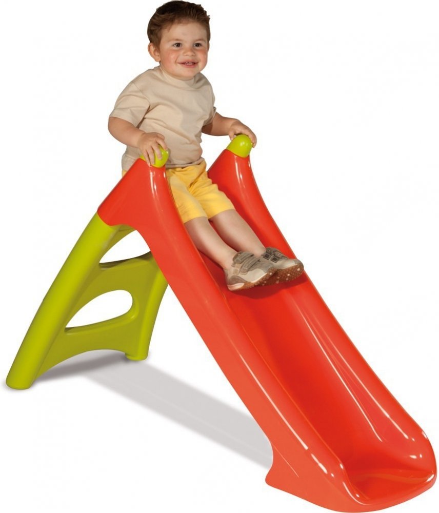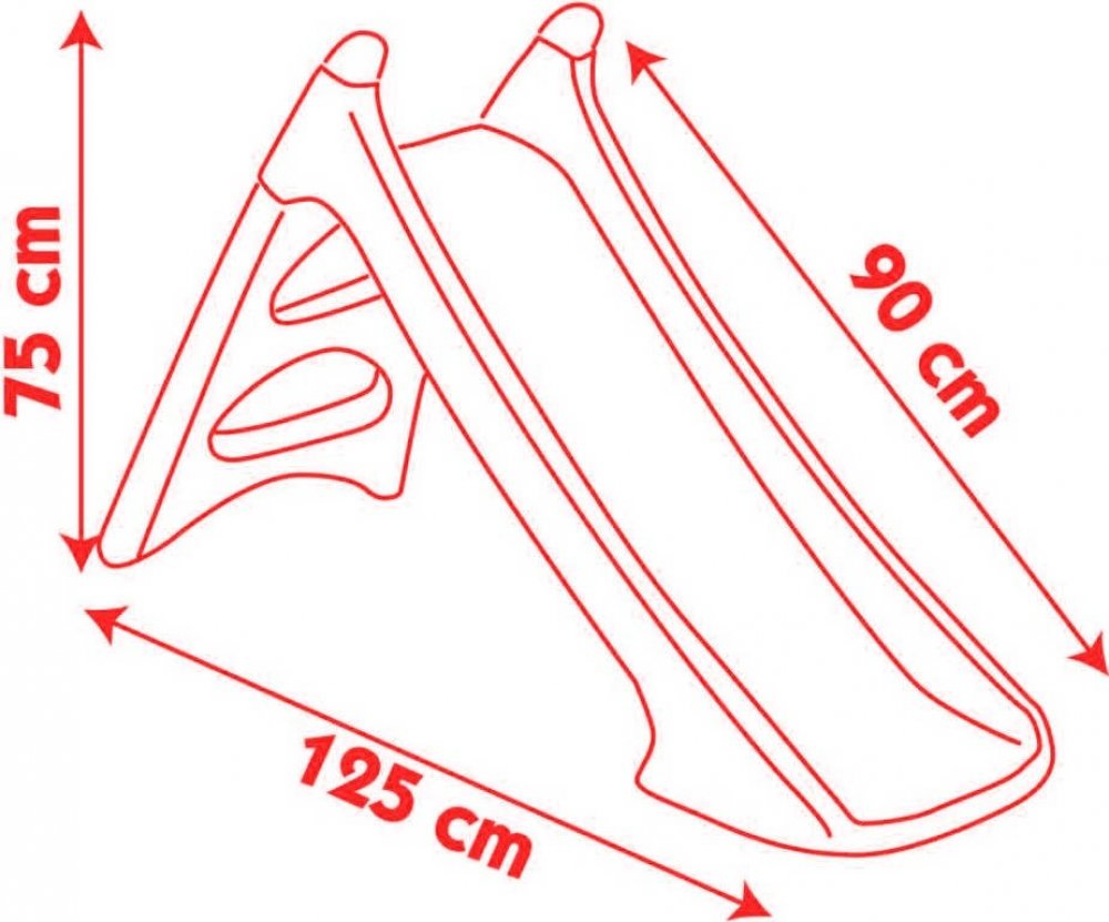 Schůdky na skluzavce mají protiskluzovou úpravu, aby se zabránilo možnému uklouznutí. Lezení po schůdkách je bezpečné a příjemné i bosou, mokrou nohou. Výška stupínků skluzavky je 75 cm. Její celková šířka je 50 cm a délka od žebříku přes plochu na klouzání po zem je 125 cm. Šířka plochy na klouzání je 38 cm. Plastový povrch skluzavky je na dotek sametový a jemný k dětským ručkám. Její hrany jsou oblé, a proto si děti nemohou při hře ublížit. Smoby je francouzským výrobcem dětských hraček, který zaručuje kvalitu a odolnost skluzavky pro děti, která je vyrobena podle norem evropského standardu. Francouzská značka Smoby je zárukou kvality ověřena během dlouhých let své existence. Každé dítě miluje jízdu na skluzavce, proto je to jedna z nejoblíbenějších hraček na zahradu.