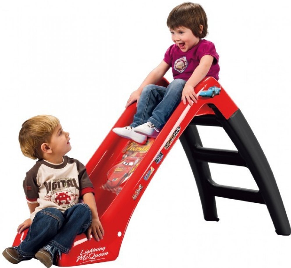 Jedinečnou vlastností dětské skluzavky XS Toboggan Cars je UV filtr, který chrání povrch plastu pro slunečním zářením a zajišťuje tak, že barvy zůstanou krásně svěží jako v první den během dlouhých let. Navíc dětská skluzavka je doplněna o praktický otvor na vodu, kam se dá napojit hadice a dítě se klouže na vodě například do svého bazénku. Děti se kloužou a mají svůj vlastní malý tobogan. Je to velká zábava a děti milují jízdu na skluzavce. Skluzavka pro děti pěkně ozdobí každý dvůr či zahradu. Díky své jedinečné barevné kombinaci červené a žluté barvy s obrázkem z pohádky působí pozitivně. U dětí barvy vyvolávají pohádkové představy, stimulují jejich představivost a podněcují fantazii. Stupínky dětské skluzavky jsou protiskluzové, bezpečné a stabilní.