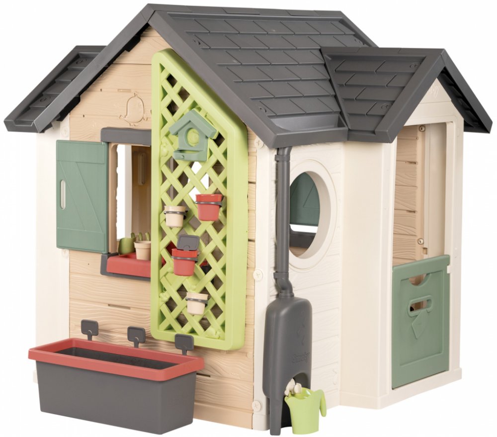 Otevírací okenice, dveře a detaily jako treláž na květináče podporují imaginativní hru a péči o rostliny v přiroze...