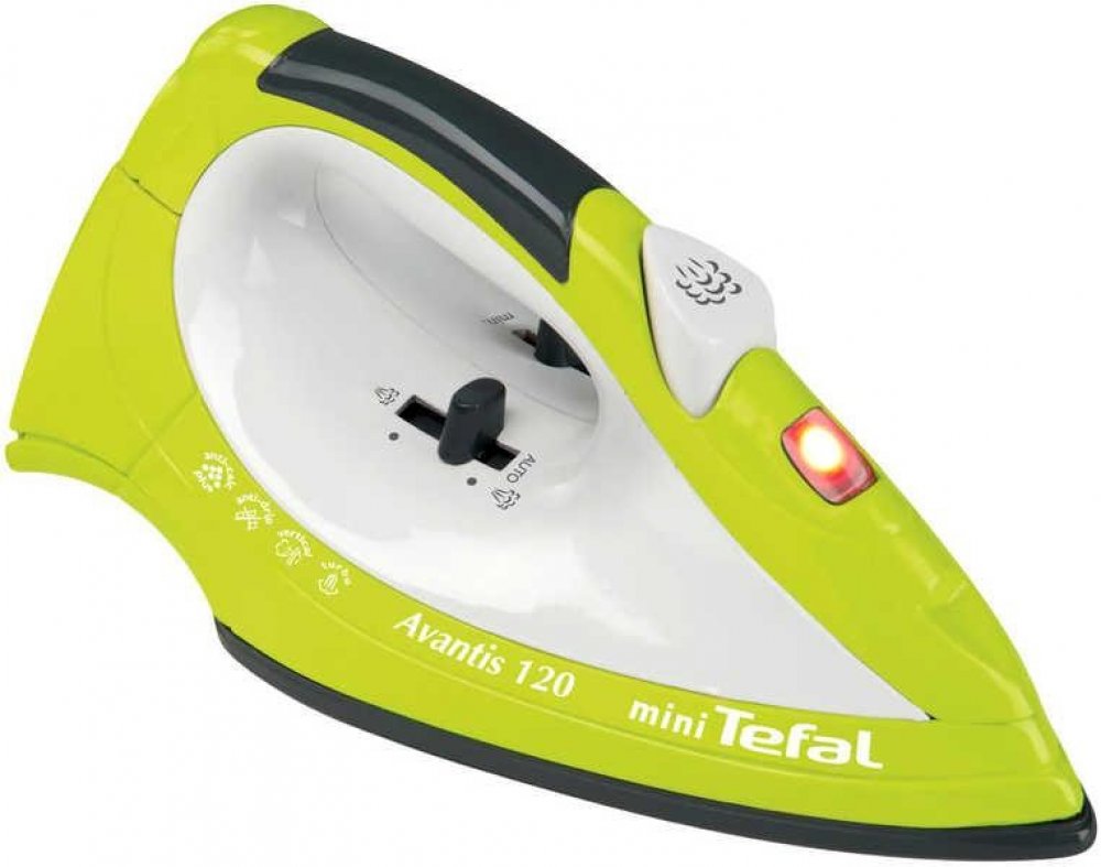 Napařovací žehlička pro malé hospodyňky v licenci Tefal je jako opravdová. Žehlička svítí a vydává zvuky. Se světlem a zvukem.