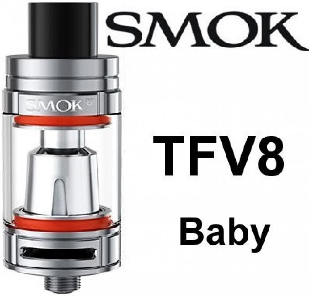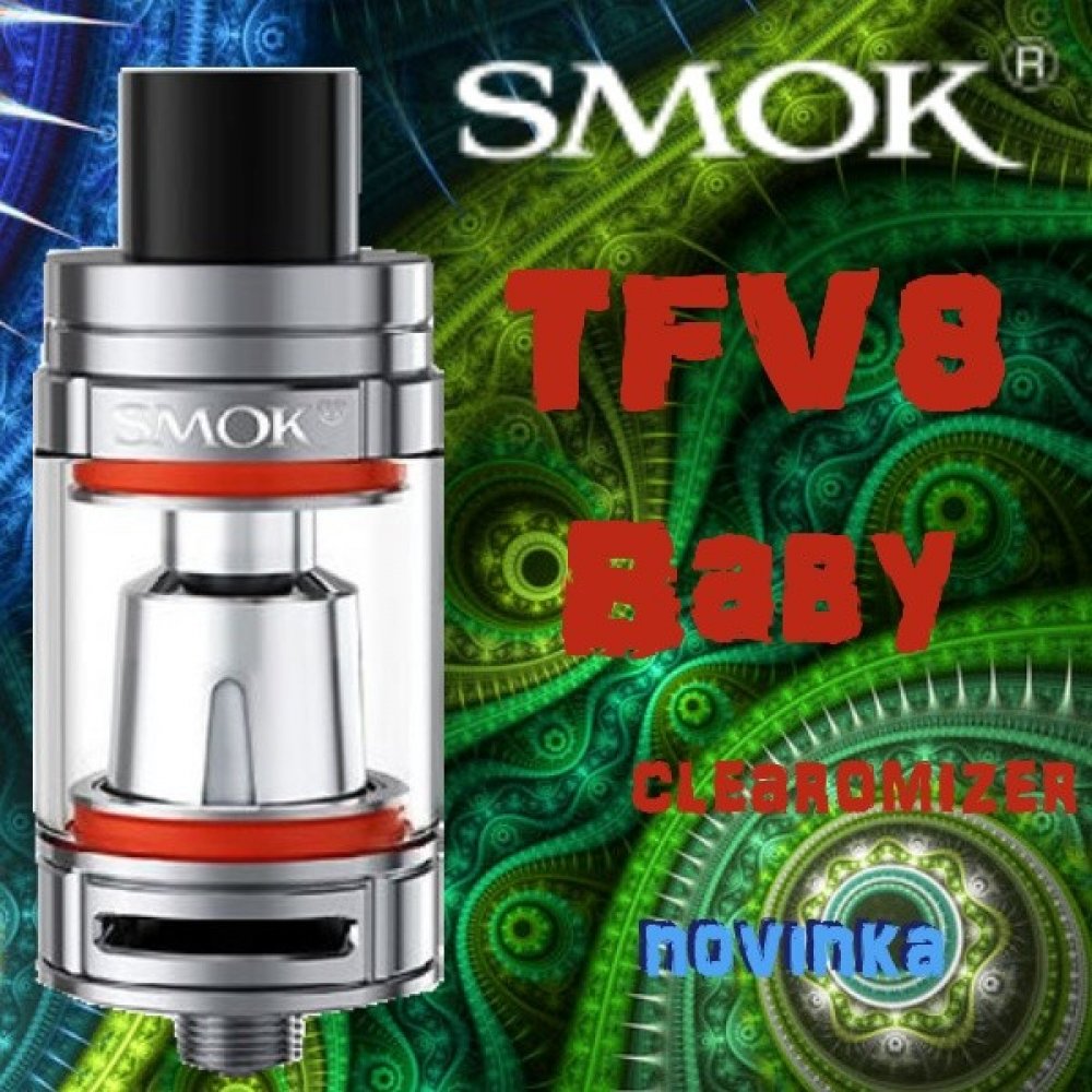 TFV8 Baby patří mezi menší clearomizery od Společnosti Smoktech, avšak jeho velikost nemá žádný vliv na jeho velké množství tvorby páry a perfektní podání chuti liquidu. Využívá horní plnění bez jakéhokoliv šroubování...po pootočení horní části plníte otvorem přímo do těla clearomizeru. Celý clearomizer je vyroben z nerez oceli a Pyrexu (laboratorní sklo). Objem nádržky činí 3ml. TFV8 Baby předsta...