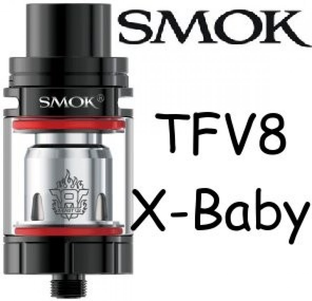 Clearomizery od společnosti Smoktech představují nového člena rodiny TFV8 X-Baby. Hlavní rozdíly mezi klasickým TFV8 Baby a X-Baby lze shrnout do čtyř bodů: velikost, objem, přívod vzduchu a použití nových žhavících hlav. X-Baby je o 6mm vyšší a o 2,5mm širší než původní model. Úprava přívodu vzduchu byla přesunuta do horní části clearomizeru - žádné protékání. Využívá systém horní plnění bez jakéhokoliv šroubování...po pootočení horního části plníte otvorem přímo do těla clearomizéru o objemu 4ml. Celý clearomizér je vyroben z nerez oceli a Pyrexu (laboratorní sklo). Nové žhavicí hlavy X-Baby jsou zkonstruovány přímo pro tento model.