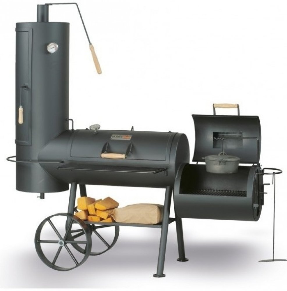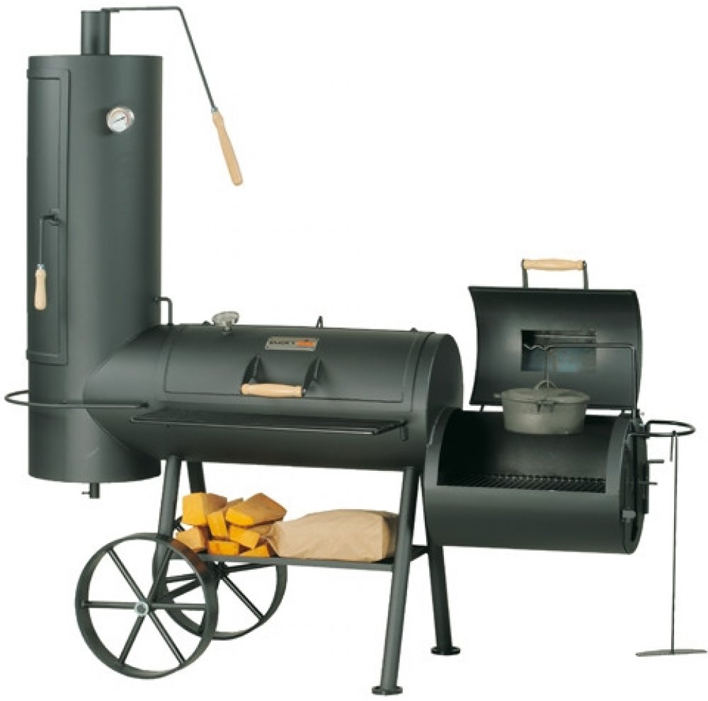 Jedná se o větší profesionální gril pro větší společnost, proto je vhodný i pro zahradní restaurace a catering servis. Díky samostatné udící komoře lze součastně grilovat i udit. Ve standardní výbavě získáte teploměr a pohrabáč. Vhodný pro přímé i nepřímé grilování. . Rozměry délka 204 x šířka 77 x výška 204 cm. Grilovací plocha: 38x107 cm grilovací komora, 38x52 cm spalovací komora, 3x průměr 38 ...