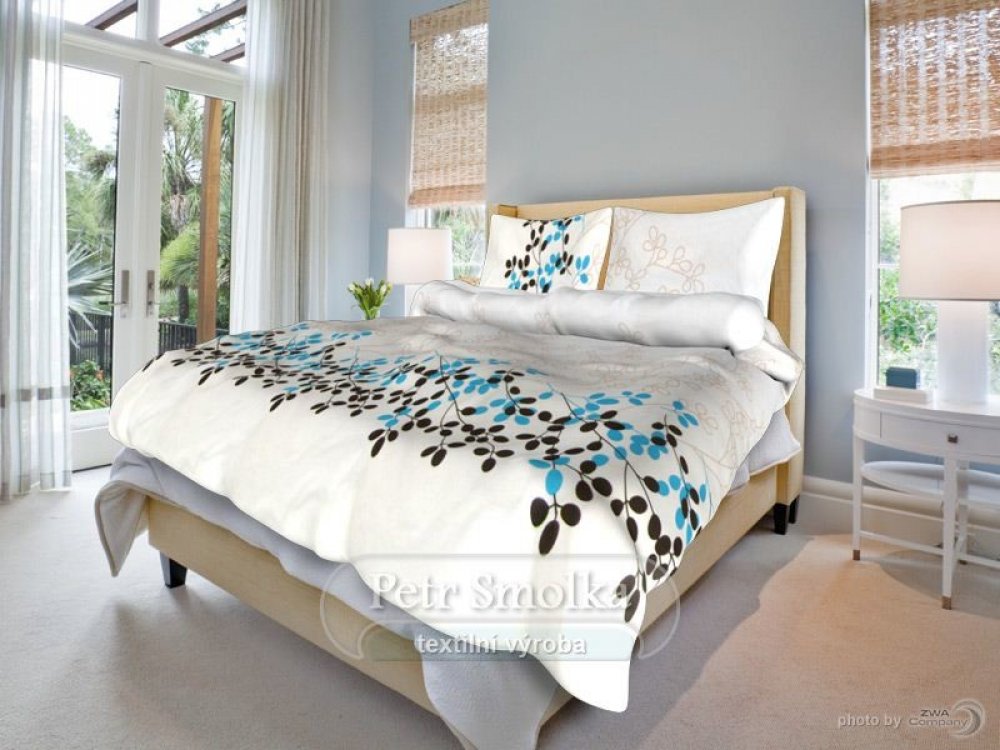 Smolka krep povlečení Květa modrá 140x200 70x90