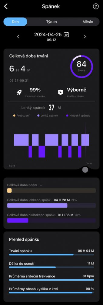 - Monitor spánkové aktivity: Sledování kvality a délky vašeho spánku pro lepší porozumění vašim spánkovým vzorcům.