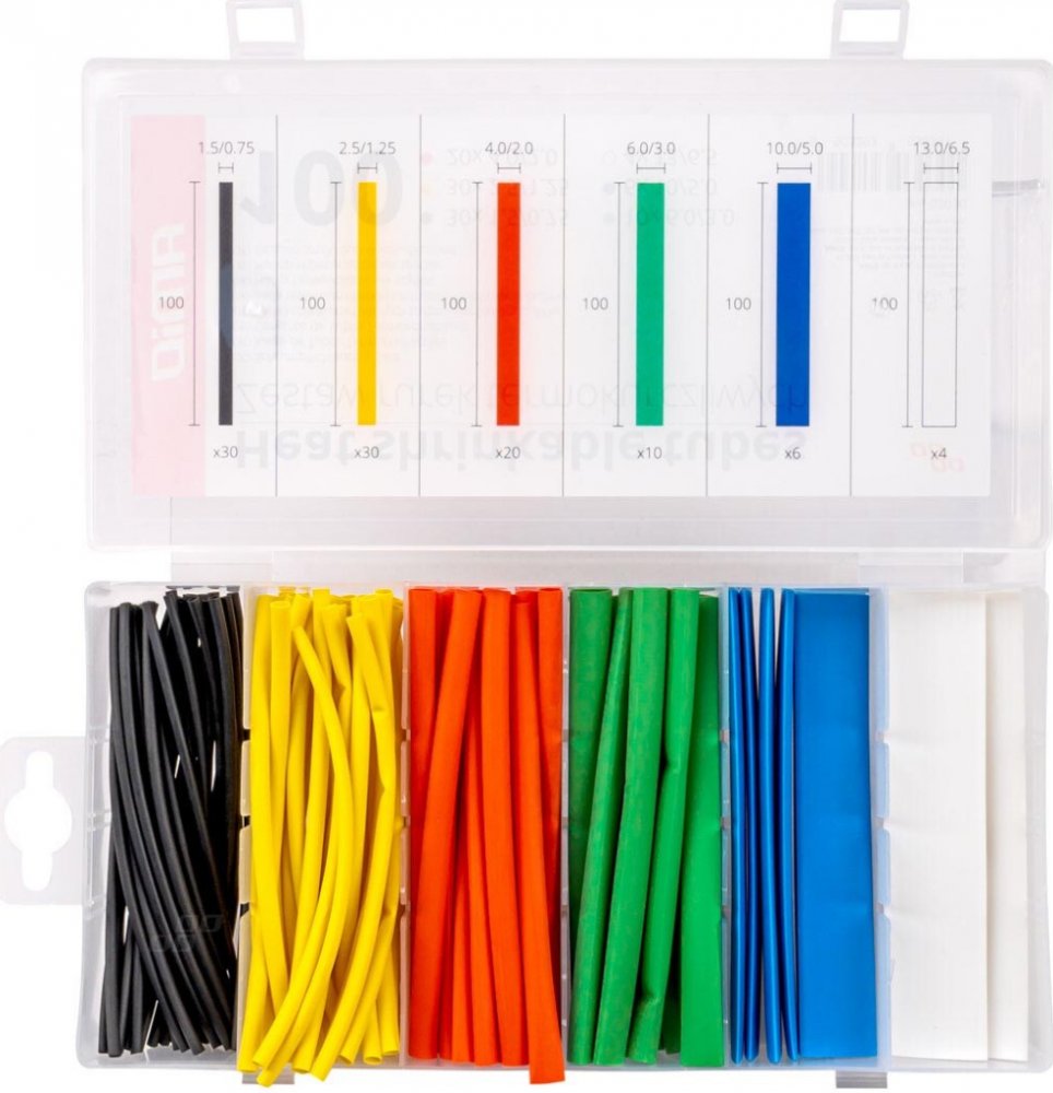 Teplem smrštitelné bužírky jsou vyrobeny z polyolefinů (např. polyethylen) zesíťovaných zářením. Dokonale izolují a těsní.Vytváří ochrannou, antikorozní a dekorativní vrstvu.Sada obsahuje následující teplem smršťovací bužírky o délce 100 mm:trubka 1,5mm černá 30ks.trubka 2,5mm žlutá 30ks.trubka 4mm červená 20 ks.trubka 6mm zelená 10 ks.trubka 10mm modrá 6 ks.trubka 13mm bílá 4 ks.Rozměry balení: 207 x 105 x 29 mm.Aplikace teplem smršťovací bužírky:Chrání přípojné potrubí před korozí. Mají vysokou odolnost vůči měnícím se povětrnostním podmínkám. Také chrání před vlhkostí. Přebírají tvar předmětu – přizpůsobují se předmětu, na kterém jsou smrštěny a zvyšují jeho mechanickou ochranu.Instalace je velmi jednoduchá: stačí připojit vodiče, obléct si tričko a zahřát ho zapalovačem nebo jiným zařízením. Po tomto úkonu se tričko zmenší maximálně o polovinu svého objemu.