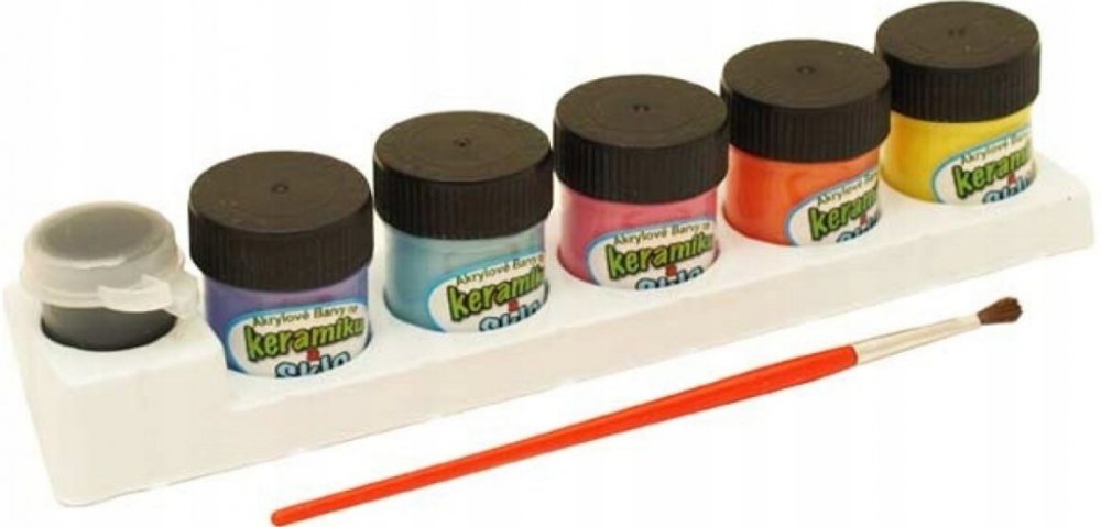 - 5 barev (žlutá, oranžová, růžová, fialová, modrozelená) v kalíšku s uzávěrem, á 12 ml,