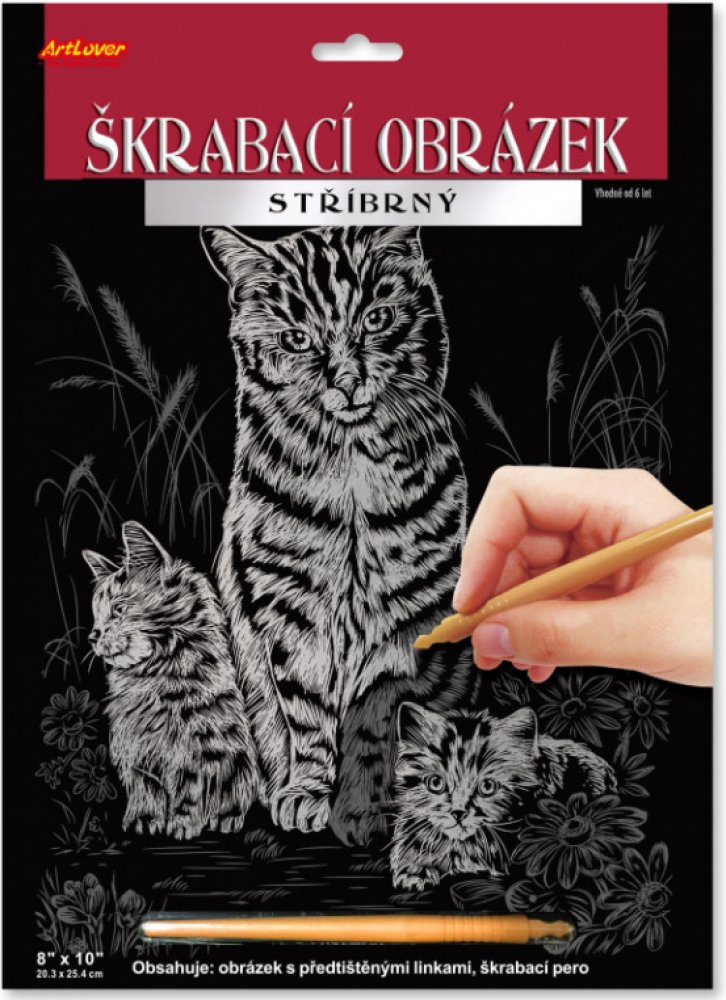 SMT Creatoys Škrabací obrázek stříbrný Kočka s koťaty
